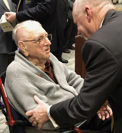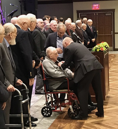 Alvin L. Leisey, Jr., age 96, receives recognition from the Masonic Lodge at the Masonic Village in Elizabethtown, PA for being a Mason for 75 years.